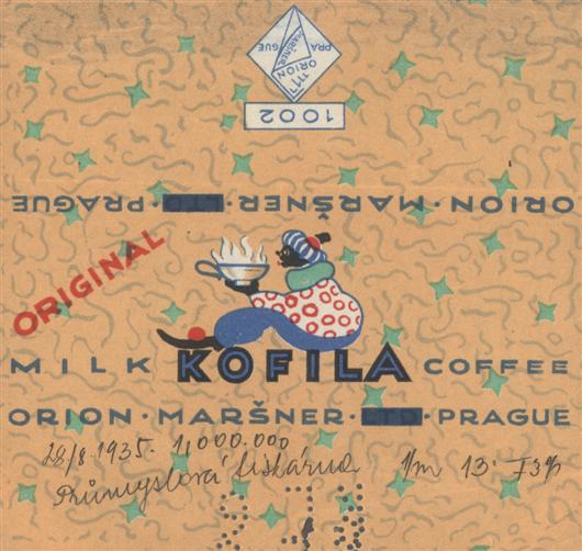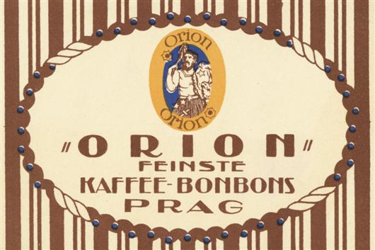 Unikátní pokus o řešení loga se dochoval na obalu „Orion nejjemnějších kávových bonbónů“
